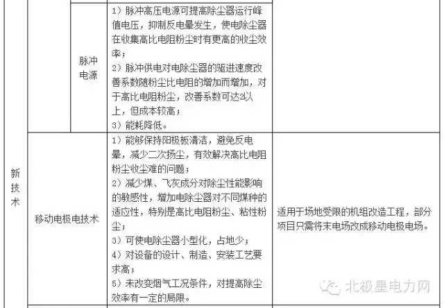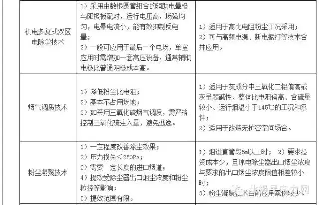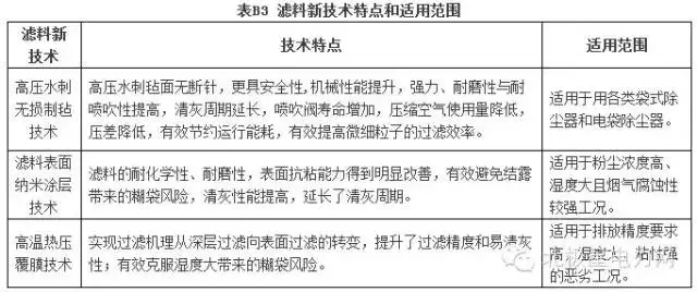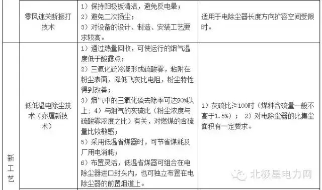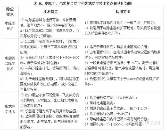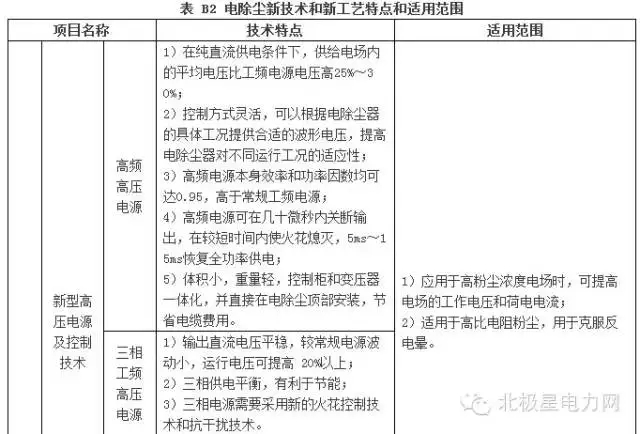 电除尘新技术及新工艺特点和适用范围见表B2。