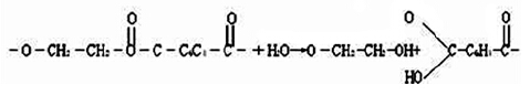 小分子物质的过程。由于分子量变小,纤维抗拉强度减弱而损坏。所以缩聚型聚合体生产的合成纤维是不耐水解