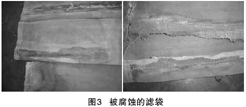 滤袋被腐蚀损坏的痕迹多为放射状,并在滤袋表面形成大面积变色,造成滤袋变硬、变脆和出现少量不规则