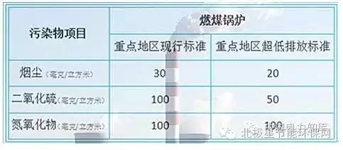 所谓超低排放,是指火电厂燃煤锅炉在发电运行、末端治理等过程中,采用多种污染物高效协同脱除集成系统技术,使其大气污染物排放浓度基本符合燃气机组排放限值,按照国家标准,燃煤发电烟气排放限值为:二氧化硫100mg/m3、氮氧化合物100mg/m3、烟尘不超过30mg/m3;重点地区执行的标准更严,分别为二氧化硫50mg/m3、氮氧化合物100mg/m3、烟尘20mg/m3。