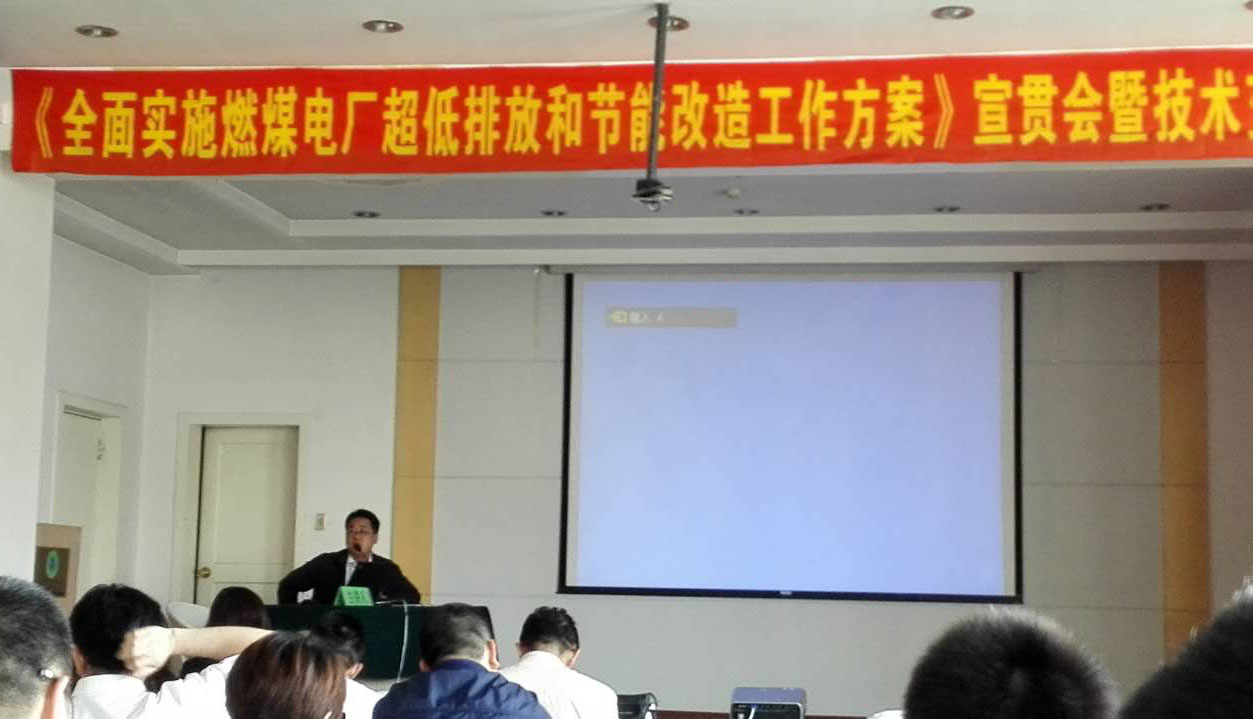 环保厅总量处吕雪峰处长作了会议致词。他首先对此次《全面实施燃煤电厂超低排放和节能改造工作方案》阐述了指导思想与目标:到2020年,全国所有具备改造条件的燃煤电厂力争实现超低排放(即在基准氧含量6%条件下,烟尘、二氧化硫、氮氧化物排放浓度分别不高于10、35、50毫克/立方米。)又阐述了重点任务:具备条件的燃煤机组要实施超低排放改造;不具备改造条件的机组要实施达标排放治理。力争提前完成超低排放改造任务。